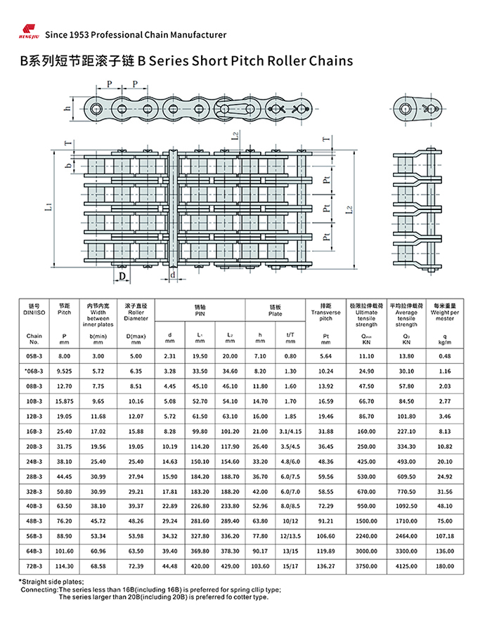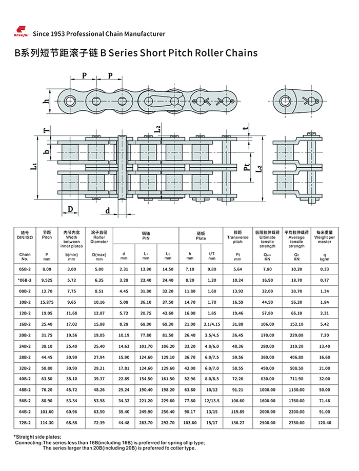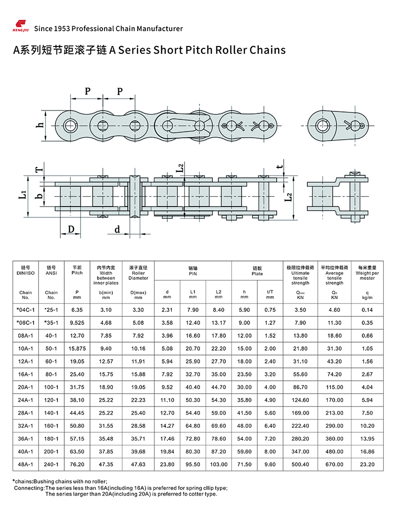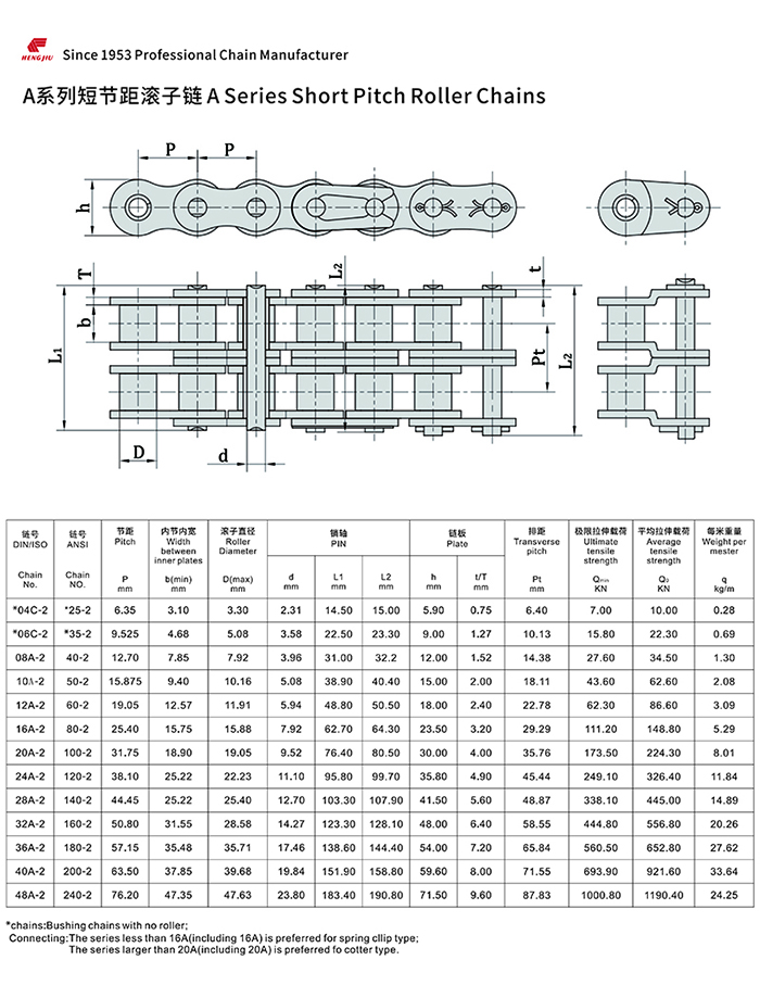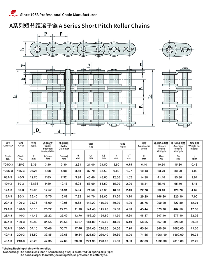 亚新(中国)集团的短节距滚子链以其高强度和耐疲劳著称,尺寸完全遵循ANSI、ISO和BS标准,可组装成单排、双排和多排,以适用所传动的功率和不同的配置空间。
