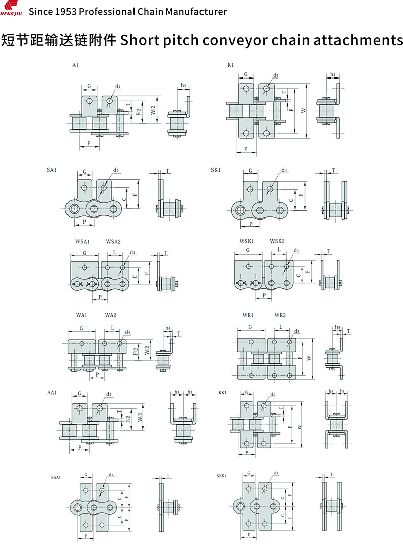 ●带附件链条(包括A、K、SA、SK、M、D等)